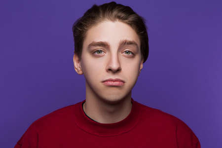 Disappointed young man. Dissatisfaction emotion. Sad and unimpressed handsome male, facial expression concept