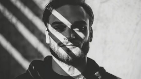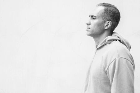 Portrait of a gay man - member of the LGBTQ community. Black and white photo. BW