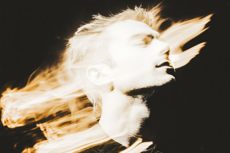 Abstract Portrait of Man with Artistic Light Effects and Motion Blur.