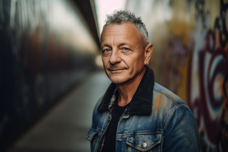 Portrait of a senior man standing in a tunnel. Looking at camera.