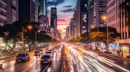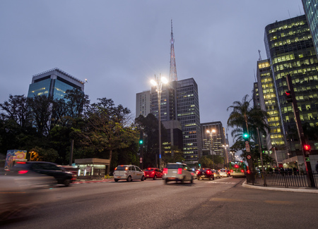 Paulista Avenue at twilight in Sao Paulo, Brazil