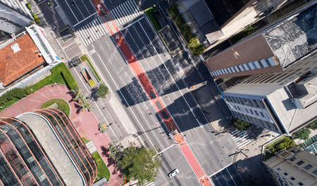 Top view of Avenida Paulista in Sao Paulo city on sunny weekend.