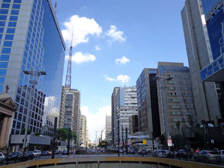 SAO PAULO, BRAZIL - February 12 Paulista Avenue is one of the most important thoroughfares of the city of Sao Paulo, one of the main financial centers of the city on February 12, 2013, in Sao Paulo