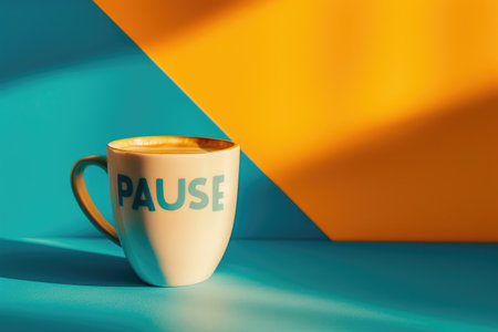 A person holds a card with the word Pause prominently displayed, emphasizing the importance of taking breaks in a modern workspace. Perfect for concepts of rest and productivity.