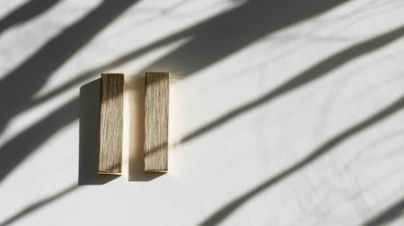 This image features minimalist wooden panels casting long shadows on a light background, perfect for illustrating modern design concepts and decor aesthetics.