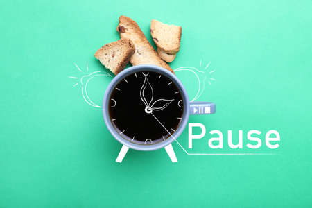 Notes Pause and reflect in a female hand. Stop, think, and assess a situation, experience, or decision before moving forward. Business and time management concept