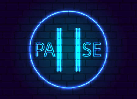 A neon sign in button pause,on the background of a brick wall.
