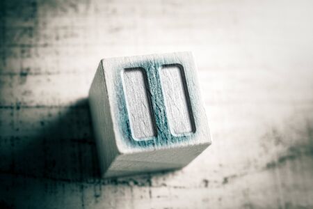 Macro Of A Pause Icon On Wooden Block On A Table
