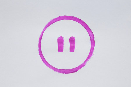 Hand drawn watercolor pink pause sign in circle on white background, video or music stop symbol, brush icon for playback control