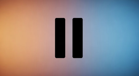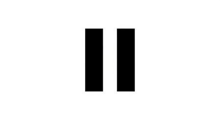 A minimalist graphic features a pause symbol rendered in black, enclosed within a square frame. The design employs simple geometric shapes and a stark contrast against a white background. The composition utilizes negative space to emphasize the subject. Suitable for a variety of commercial and editorial uses.