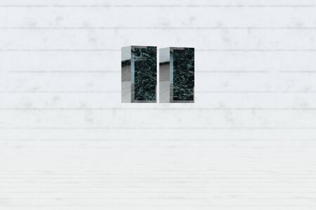Marble 3d double quotes symbol. Dark green marble sign on white wood background. 3d rendered font character.