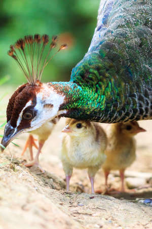The Indian peafowl (Pavo cristatus) with cute newborn chicks