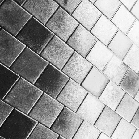 Background or texture from a broken and equal tile with patches of light and drops. Stone blocks on the sidewalk