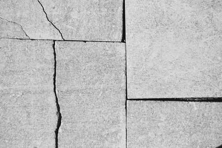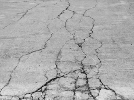 concrete floor or cement road on old parking lot damaged and cracked from ground subsidence.
