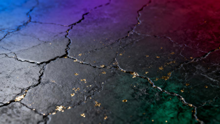 Concrete with golden cracks highlights an artistic approach to structure, showing natures impact on urban design.