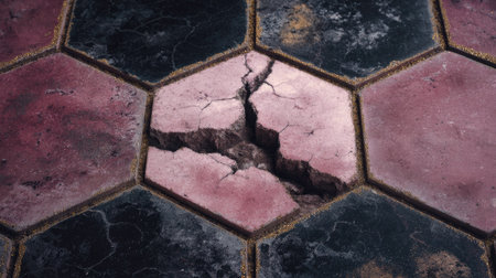 Broken ceramic tile floor texture. Broken ceramic tiles with cracks and holes.