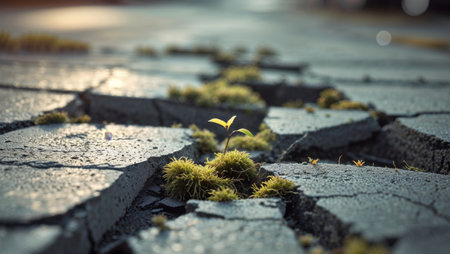 AI Generated. Moss Growing Through Urban Pavement in Soft Light