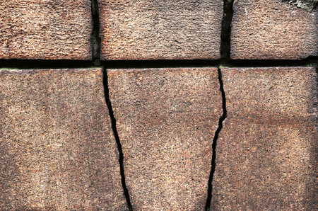 Brick wall with crack in the middle. Abstract background for design.