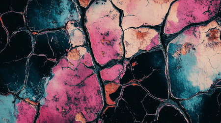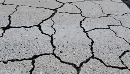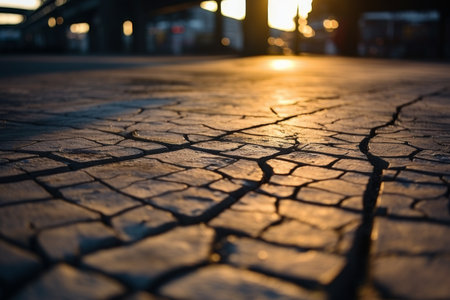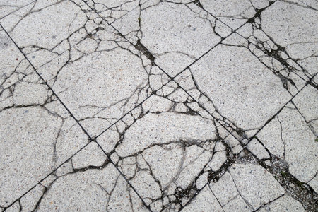 This image showcases a cracked concrete surface, emphasizing the natural wear and tear found in urban environments, creating an intriguing visual texture and aesthetic.