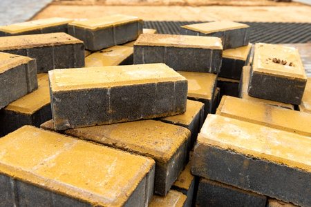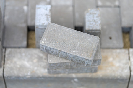 Closeup of stacked concrete bricks for construction projects.