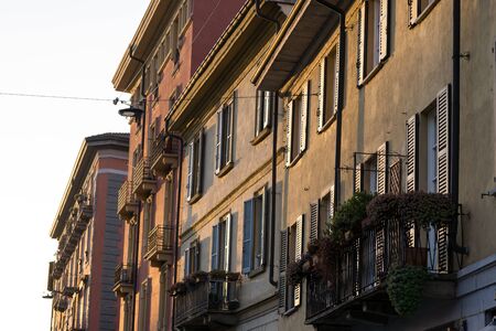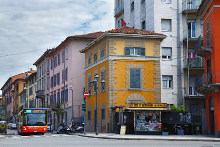 BERGAMO, ITALY - MAY 22, 2019: View of the historic buildings in the Lower Bergamo (Citta Bassa) in northern Italy. Bergamo is a city in the alpine Lombardy region.