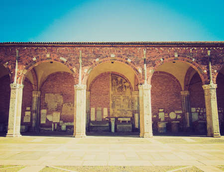 Vintage looking Basilica of Sant Ambrogio in Milan, Italy