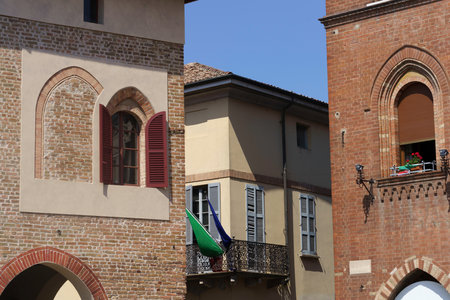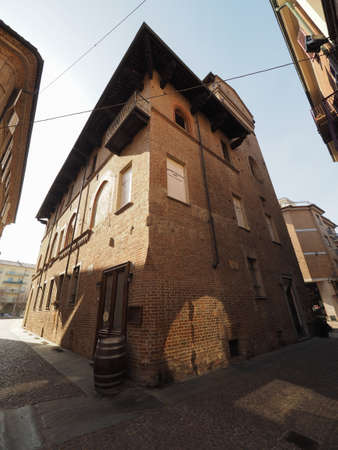 THE CITY OF ALBA, ITALY - CIRCA FEBRUARY 2019: Ancient medieval tower house