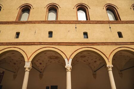 MILANO, ITALY, JULY 19, 2019: Courtyard of Castello Sforzesco in Italian city Milano