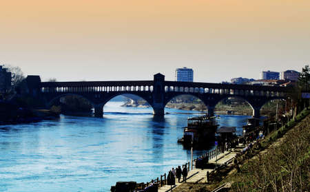 Pavia (Lombardy, Italy) and the covered bridge over the Ticino river