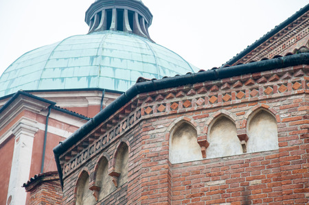 Red brick building of Basilica di Sant Agostino in the downtown of Milan, Italy, dedicated to St Ambrose the great Bishop theologian