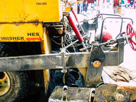 machine for creating an improved surface on the road next to the roller. devices for road construction. urban landscape, highway creation.