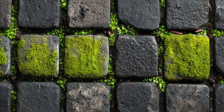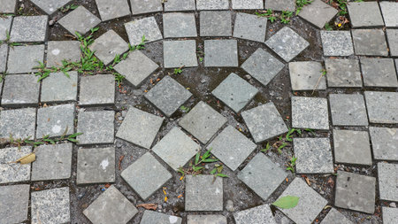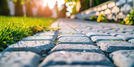 A picturesque stone pathway made of cobblestones and bricks, a testament to architectural heritage, creating a textured background for urban scenes