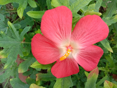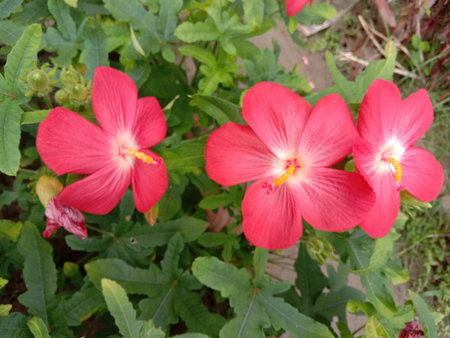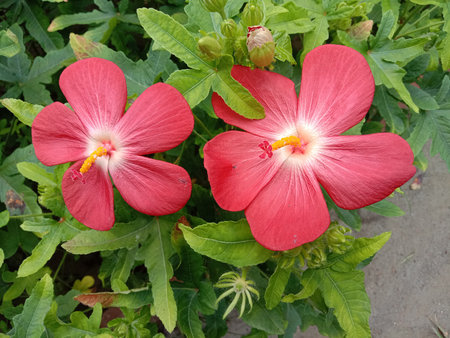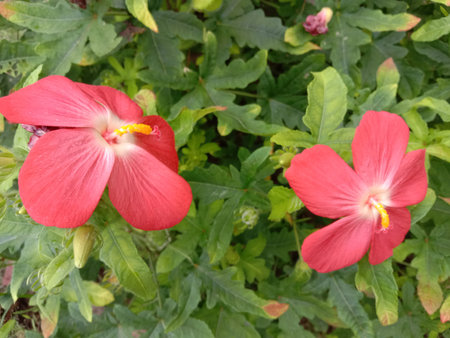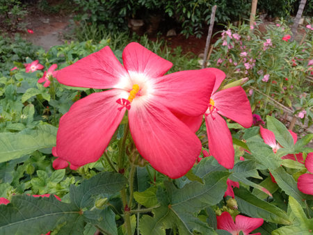 The crimson scarlet rosemallow flowers are splendid and beautiful.