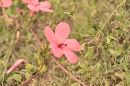 Close up of a beauty of red flower, Hibiscus family, in shallow focus