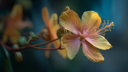 Elegant peach-toned hibiscus blossoms with a soft bokeh background