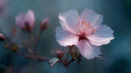 Ethereal Pink Flower Blossom with a Soft Dreamy Blue Background