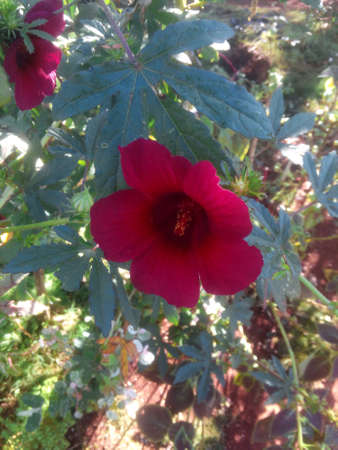 Dark red cranberry hibiscus or African rosemallow plant. (Hibiscus acetosella)