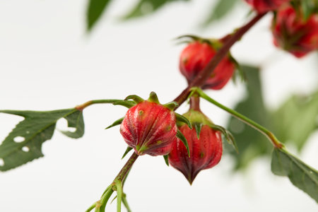 Close up Hibiscus sabdariffa red or roselle fruit on white background