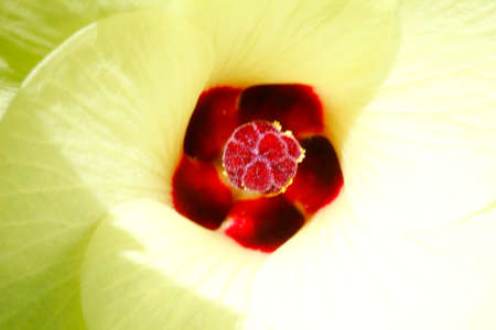 Macro photography of red hibiscus flower or Sudanese rose. Flowers background