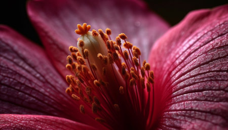 Vibrant tropical flower pistil in dewy close up, abstract beauty generated by artificial intelligence