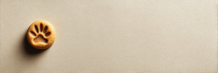 A delightful pet treat with a paw print design sits alone on a clean, minimalist background, ready to be enjoyed by furry friends at any time of day.