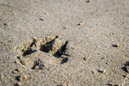 Footprint of a dog's foot on the wet sand on the banks of the Danube.