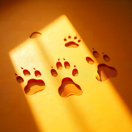 Golden Hour Animal Paw Prints Cute Adorable Pet Tracks on Yellow Background
