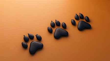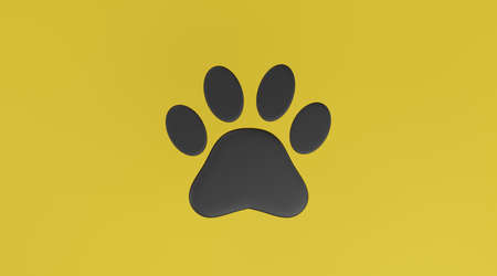 Black paw print on yellow background. Dog or cat paw print. Animal track. pet concept. 3D renderring.