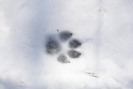An animal's paw print marks a blanket of untouched snow, highlighting the beauty of a winter scene.