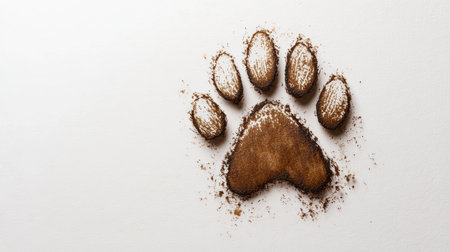 Soft brown powder shapes a detailed paw print against a pale backdrop, showing nature's artistry.