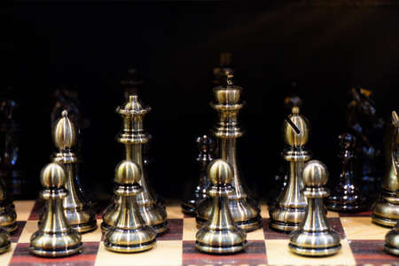 Intellectual game -chess. Wooden chess pieces on the chessboard