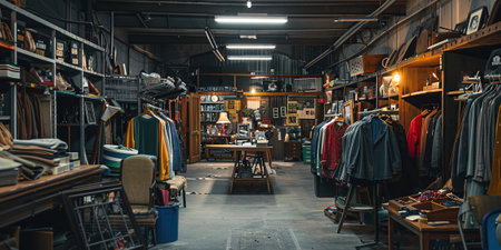 Fashion store interior with a variety of clothing and accessories. Retro style