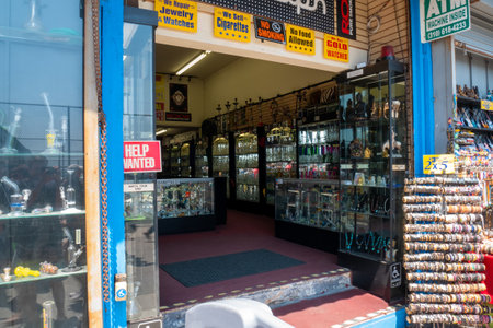 VENICE BEACH, USA - JUNE 25, 2016: View of Stores at boardwalk of Venice Beach in summer.