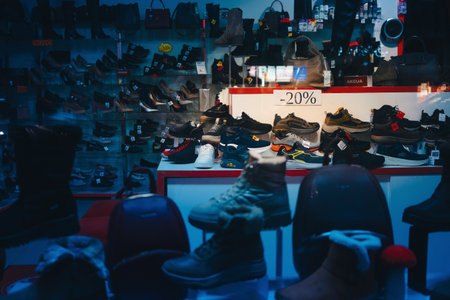 Cacak, Serbia - November 23, 2025: 20% discount in a shoe store in the city center.